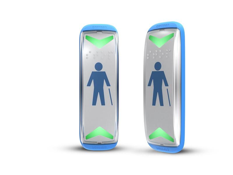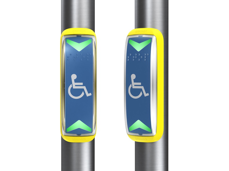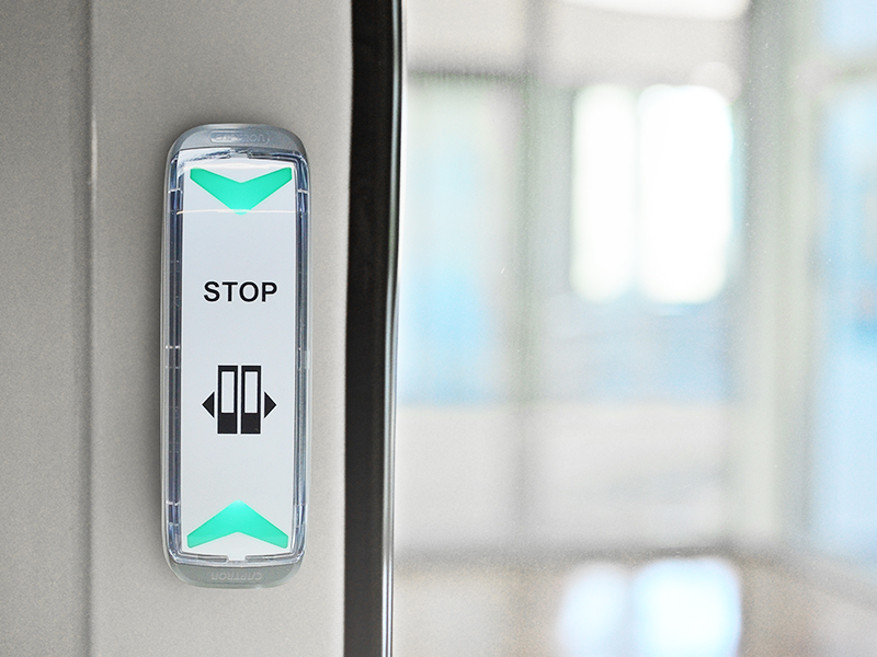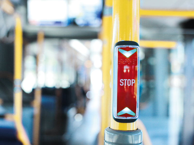 Nowoczesne, zgodne z normą R107.8 rozwiązanie dla pasażera w transporcie publicznym, dzięki naszej nowej, kompaktowej generacji przycisków żądania stopu.